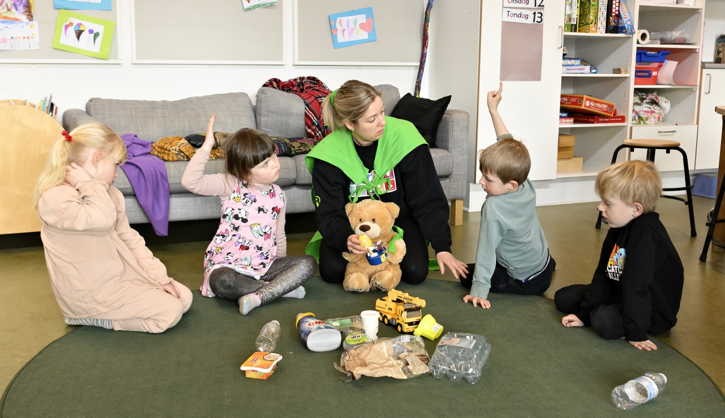 Få besøg af en vaskeægte Naturhelt, og hør om affald i børnehøjde.