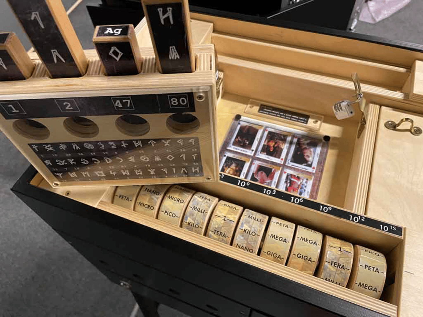 De 12 “escape-bokse” indholder hver en stor træmønt, som frigøres ved at løse en række opgaver, så som hængelåse, labyrinter, cryptex-ruller, mønstre og lignende.